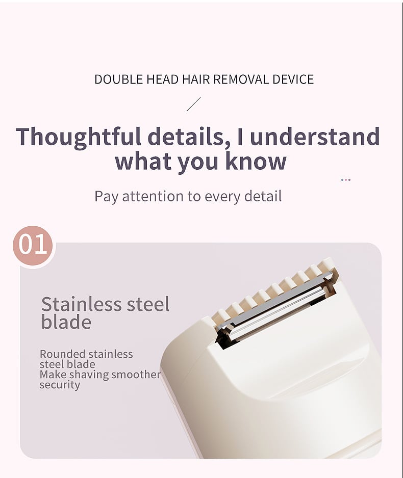 Dual Head FunctionalityThe dual head design offers effortless trimming and shaving, making it perfect for delicate areas like the bikini line, underarms, and legs.